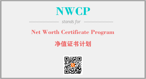 上述内容是“Net Worth Certificate Program”作为“NWCP”的缩写,解释为“净值证书计划”时的信息,以及英文缩略词NWCP所代表的英文单词,其对应的中文拼音、详细解释以及在英文中的流行度和相关分类、应用领域及应用示例等。