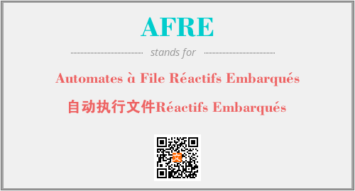 以上为Automates à File Réactifs Embarqués英文缩略词AFRE的中文解释,以及该英文缩写在英语的流行度、分类和应用领域方面的信息。