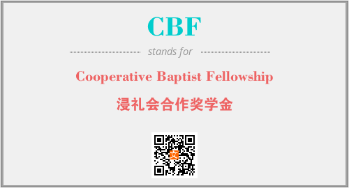 英文缩略词“CBF”经常作为“Cooperative Baptist Fellowship”的英文缩写来使用,中文表示:“浸礼会合作奖学金”。本文将详细介绍英文缩写词CBF所代表英文单词,其对应的中文拼音、详细解释以及在英语中的流行度。此外,还有关于缩略词CBF的分类、应用领域及相关应用示例等。