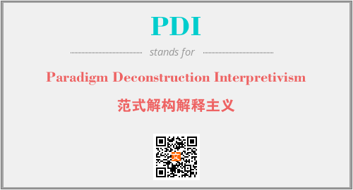 上述内容是“Paradigm Deconstruction Interpretivism”作为“PDI”的缩写,解释为“范式解构解释主义”时的信息,以及英文缩略词PDI所代表的英文单词,其对应的中文拼音、详细解释以及在英文中的流行度和相关分类、应用领域及应用示例等。