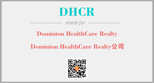 上述内容是“Dominion HealthCare Realty”作为“DHCR”的缩写,解释为“Dominion HealthCare Realty公司”时的信息,以及英文缩略词DHCR所代表的英文单词,其对应的中文拼音、详细解释以及在英文中的流行度和相关分类、应用领域及应用示例等。