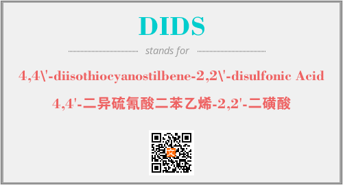 上述内容是“4,4\'-diisothiocyanostilbene-2,2\'-disulfonic Acid”作为“DIDS”的缩写,解释为“4,4'-二异硫氰酸二苯乙烯-2,2'-二磺酸”时的信息,以及英文缩略词DIDS所代表的英文单词,其对应的中文拼音、详细解释以及在英文中的流行度和相关分类、应用领域及应用示例等。