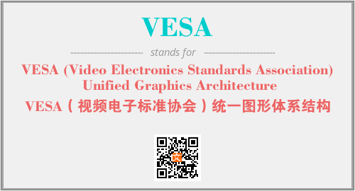 以上为VESA (Video Electronics Standards Association) Unified Graphics Architecture英文缩略词VESA的中文解释,以及该英文缩写在英语的流行度、分类和应用领域方面的信息。