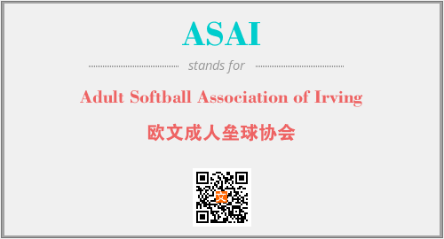 上述内容是“Adult Softball Association of Irving”作为“ASAI”的缩写,解释为“欧文成人垒球协会”时的信息,以及英文缩略词ASAI所代表的英文单词,其对应的中文拼音、详细解释以及在英文中的流行度和相关分类、应用领域及应用示例等。