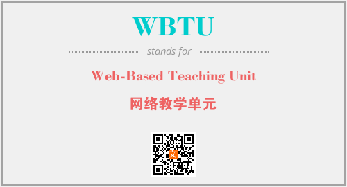 英文缩略词“WBTU”经常作为“Web-Based Teaching Unit”的英文缩写来使用,中文表示:“网络教学单元”。本文将详细介绍英文缩写词WBTU所代表英文单词,其对应的中文拼音、详细解释以及在英语中的流行度。此外,还有关于缩略词WBTU的分类、应用领域及相关应用示例等。
