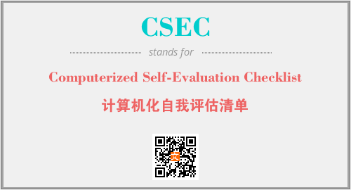 上述内容是“Computerized Self-Evaluation Checklist”作为“CSEC”的缩写,解释为“计算机化自我评估清单”时的信息,以及英文缩略词CSEC所代表的英文单词,其对应的中文拼音、详细解释以及在英文中的流行度和相关分类、应用领域及应用示例等。