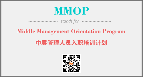 以上为Middle Management Orientation Program英文缩略词MMOP的中文解释,以及该英文缩写在英语的流行度、分类和应用领域方面的信息。