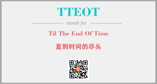 上述内容是“Til The End Of Time”作为“TTEOT”的缩写,解释为“直到时间的尽头”时的信息,以及英文缩略词TTEOT所代表的英文单词,其对应的中文拼音、详细解释以及在英文中的流行度和相关分类、应用领域及应用示例等。