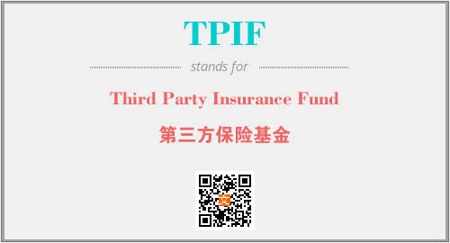 上述内容是“Third Party Insurance Fund”作为“TPIF”的缩写,解释为“第三方保险基金”时的信息,以及英文缩略词TPIF所代表的英文单词,其对应的中文拼音、详细解释以及在英文中的流行度和相关分类、应用领域及应用示例等。