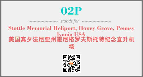 上述内容是“Stottle Memorial Heliport, Honey Grove, Pennsylvania USA”作为“02P”的缩写,解释为“美国宾夕法尼亚州霍尼格罗夫斯托特纪念直升机场”时的信息,以及英文缩略词02P所代表的英文单词,其对应的中文拼音、详细解释以及在英文中的流行度和相关分类、应用领域及应用示例等。