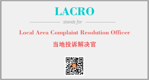 以上为Local Area Complaint Resolution Officer英文缩略词LACRO的中文解释,以及该英文缩写在英语的流行度、分类和应用领域方面的信息。