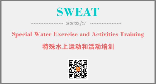 英文缩略词“SWEAT”经常作为“Special Water Exercise and Activities Training”的英文缩写来使用,中文表示:“特殊水上运动和活动培训”。本文将详细介绍英文缩写词SWEAT所代表英文单词,其对应的中文拼音、详细解释以及在英语中的流行度。此外,还有关于缩略词SWEAT的分类、应用领域及相关应用示例等。