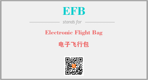 英文缩略词“EFB”经常作为“Electronic Flight Bag”的英文缩写来使用,中文表示:“电子飞行包”。本文将详细介绍英文缩写词EFB所代表英文单词,其对应的中文拼音、详细解释以及在英语中的流行度。此外,还有关于缩略词EFB的分类、应用领域及相关应用示例等。