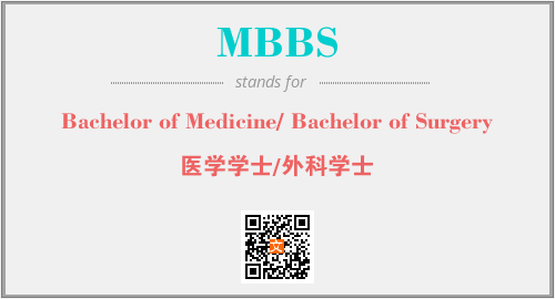 上述内容是“Bachelor of Medicine/ Bachelor of Surgery”作为“MBBS”的缩写,解释为“医学学士/外科学士”时的信息,以及英文缩略词MBBS所代表的英文单词,其对应的中文拼音、详细解释以及在英文中的流行度和相关分类、应用领域及应用示例等。