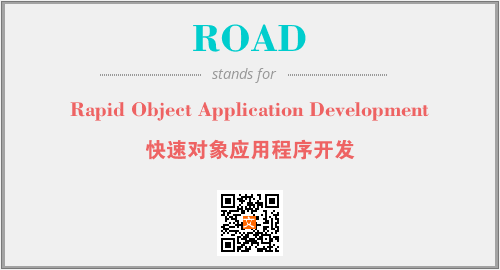 上述内容是“Rapid Object Application Development”作为“ROAD”的缩写,解释为“快速对象应用程序开发”时的信息,以及英文缩略词ROAD所代表的英文单词,其对应的中文拼音、详细解释以及在英文中的流行度和相关分类、应用领域及应用示例等。