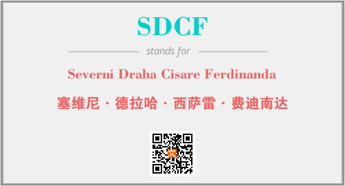 上述内容是“Severni Draha Cisare Ferdinanda”作为“SDCF”的缩写,解释为“塞维尼·德拉哈·西萨雷·费迪南达”时的信息,以及英文缩略词SDCF所代表的英文单词,其对应的中文拼音、详细解释以及在英文中的流行度和相关分类、应用领域及应用示例等。