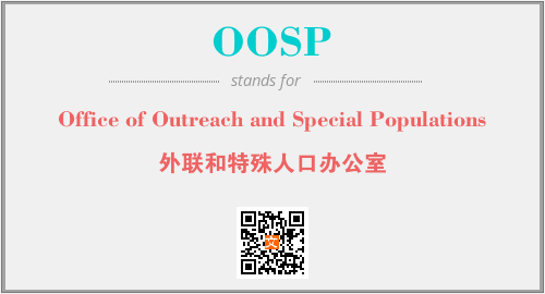 上述内容是“Office of Outreach and Special Populations”作为“OOSP”的缩写,解释为“外联和特殊人口办公室”时的信息,以及英文缩略词OOSP所代表的英文单词,其对应的中文拼音、详细解释以及在英文中的流行度和相关分类、应用领域及应用示例等。