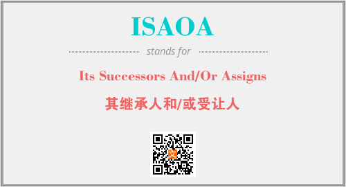 英文缩略词“ISAOA”经常作为“Its Successors And/Or Assigns”的英文缩写来使用,中文表示:“其继承人和/或受让人”。本文将详细介绍英文缩写词ISAOA所代表英文单词,其对应的中文拼音、详细解释以及在英语中的流行度。此外,还有关于缩略词ISAOA的分类、应用领域及相关应用示例等。