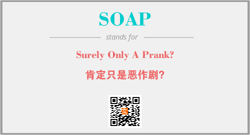 以上为Surely Only A Prank?英文缩略词SOAP的中文解释,以及该英文缩写在英语的流行度、分类和应用领域方面的信息。