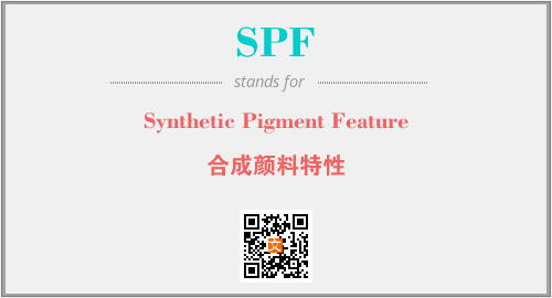 上述内容是“Synthetic Pigment Feature”作为“SPF”的缩写,解释为“合成颜料特性”时的信息,以及英文缩略词SPF所代表的英文单词,其对应的中文拼音、详细解释以及在英文中的流行度和相关分类、应用领域及应用示例等。