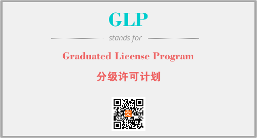 上述内容是“Graduated License Program”作为“GLP”的缩写,解释为“分级许可计划”时的信息,以及英文缩略词GLP所代表的英文单词,其对应的中文拼音、详细解释以及在英文中的流行度和相关分类、应用领域及应用示例等。