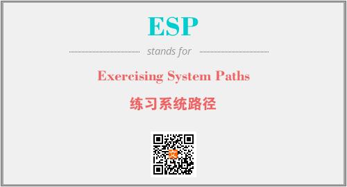 英文缩略词“ESP”经常作为“Exercising System Paths”的英文缩写来使用,中文表示:“练习系统路径”。本文将详细介绍英文缩写词ESP所代表英文单词,其对应的中文拼音、详细解释以及在英语中的流行度。此外,还有关于缩略词ESP的分类、应用领域及相关应用示例等。
