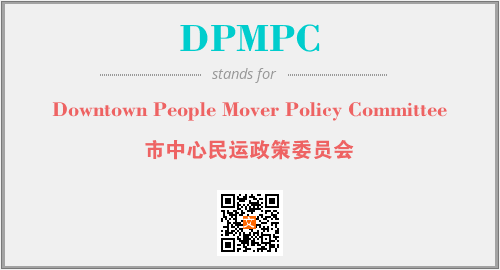 上述内容是“Downtown People Mover Policy Committee”作为“DPMPC”的缩写,解释为“市中心民运政策委员会”时的信息,以及英文缩略词DPMPC所代表的英文单词,其对应的中文拼音、详细解释以及在英文中的流行度和相关分类、应用领域及应用示例等。