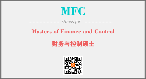 上述内容是“Masters of Finance and Control”作为“MFC”的缩写,解释为“财务与控制硕士”时的信息,以及英文缩略词MFC所代表的英文单词,其对应的中文拼音、详细解释以及在英文中的流行度和相关分类、应用领域及应用示例等。