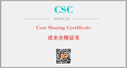 上述内容是“Cost Sharing Certificate”作为“CSC”的缩写,解释为“成本分摊证书”时的信息,以及英文缩略词CSC所代表的英文单词,其对应的中文拼音、详细解释以及在英文中的流行度和相关分类、应用领域及应用示例等。