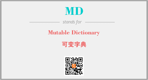 上述内容是“Mutable Dictionary”作为“MD”的缩写,解释为“可变字典”时的信息,以及英文缩略词MD所代表的英文单词,其对应的中文拼音、详细解释以及在英文中的流行度和相关分类、应用领域及应用示例等。