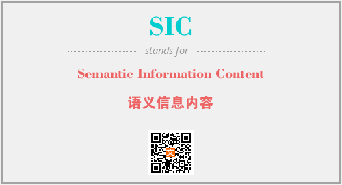 上述内容是“Semantic Information Content”作为“SIC”的缩写,解释为“语义信息内容”时的信息,以及英文缩略词SIC所代表的英文单词,其对应的中文拼音、详细解释以及在英文中的流行度和相关分类、应用领域及应用示例等。
