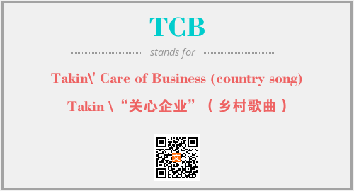 以上为Takin\' Care of Business (country song)英文缩略词TCB的中文解释,以及该英文缩写在英语的流行度、分类和应用领域方面的信息。