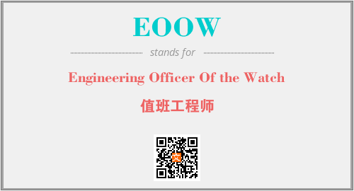 上述内容是“Engineering Officer Of the Watch”作为“EOOW”的缩写,解释为“值班工程师”时的信息,以及英文缩略词EOOW所代表的英文单词,其对应的中文拼音、详细解释以及在英文中的流行度和相关分类、应用领域及应用示例等。