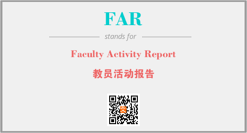 上述内容是“Faculty Activity Report”作为“FAR”的缩写,解释为“教员活动报告”时的信息,以及英文缩略词FAR所代表的英文单词,其对应的中文拼音、详细解释以及在英文中的流行度和相关分类、应用领域及应用示例等。