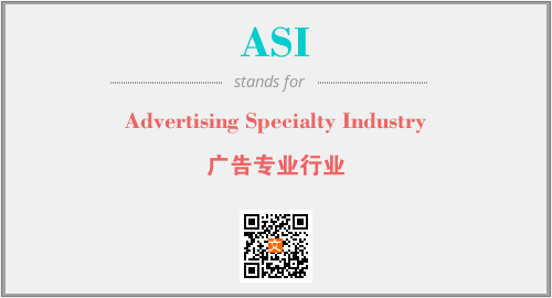 上述内容是“Advertising Specialty Industry”作为“ASI”的缩写,解释为“广告专业行业”时的信息,以及英文缩略词ASI所代表的英文单词,其对应的中文拼音、详细解释以及在英文中的流行度和相关分类、应用领域及应用示例等。
