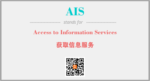 上述内容是“Access to Information Services”作为“AIS”的缩写,解释为“获取信息服务”时的信息,以及英文缩略词AIS所代表的英文单词,其对应的中文拼音、详细解释以及在英文中的流行度和相关分类、应用领域及应用示例等。