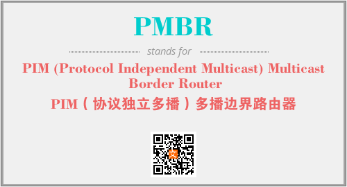 上述内容是“PIM (Protocol Independent Multicast) Multicast Border Router”作为“PMBR”的缩写,解释为“PIM(协议独立多播)多播边界路由器”时的信息,以及英文缩略词PMBR所代表的英文单词,其对应的中文拼音、详细解释以及在英文中的流行度和相关分类、应用领域及应用示例等。