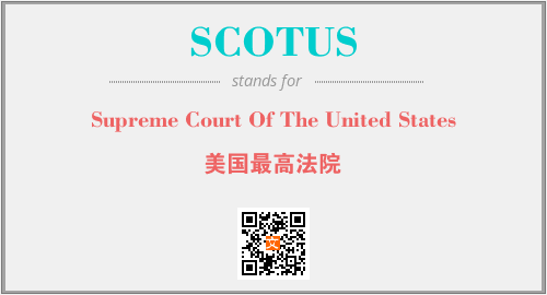 英文缩略词“SCOTUS”经常作为“Supreme Court Of The United States”的英文缩写来使用,中文表示:“美国最高法院”。本文将详细介绍英文缩写词SCOTUS所代表英文单词,其对应的中文拼音、详细解释以及在英语中的流行度。此外,还有关于缩略词SCOTUS的分类、应用领域及相关应用示例等。