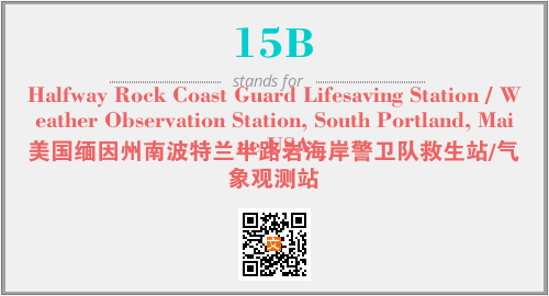 上述内容是“Halfway Rock Coast Guard Lifesaving Station / Weather Observation Station, South Portland, Maine USA”作为“15B”的缩写,解释为“美国缅因州南波特兰半路岩海岸警卫队救生站/气象观测站”时的信息,以及英文缩略词15B所代表的英文单词,其对应的中文拼音、详细解释以及在英文中的流行度和相关分类、应用领域及应用示例等。