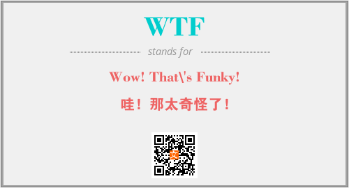 以上为Wow! That\'s Funky!英文缩略词WTF的中文解释,以及该英文缩写在英语的流行度、分类和应用领域方面的信息。