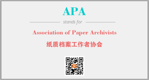 英文缩略词“APA”经常作为“Association of Paper Archivists”的英文缩写来使用,中文表示:“纸质档案工作者协会”。本文将详细介绍英文缩写词APA所代表英文单词,其对应的中文拼音、详细解释以及在英语中的流行度。此外,还有关于缩略词APA的分类、应用领域及相关应用示例等。