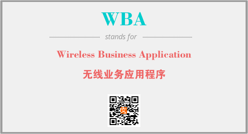 上述内容是“Wireless Business Application”作为“WBA”的缩写,解释为“无线业务应用程序”时的信息,以及英文缩略词WBA所代表的英文单词,其对应的中文拼音、详细解释以及在英文中的流行度和相关分类、应用领域及应用示例等。