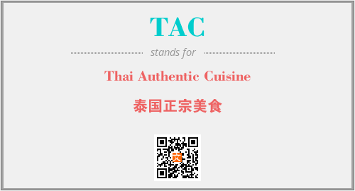 上述内容是“Thai Authentic Cuisine”作为“TAC”的缩写,解释为“泰国正宗美食”时的信息,以及英文缩略词TAC所代表的英文单词,其对应的中文拼音、详细解释以及在英文中的流行度和相关分类、应用领域及应用示例等。