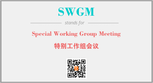 英文缩略词“SWGM”经常作为“Special Working Group Meeting”的英文缩写来使用,中文表示:“特别工作组会议”。本文将详细介绍英文缩写词SWGM所代表英文单词,其对应的中文拼音、详细解释以及在英语中的流行度。此外,还有关于缩略词SWGM的分类、应用领域及相关应用示例等。