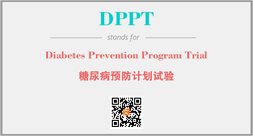 上述内容是“Diabetes Prevention Program Trial”作为“DPPT”的缩写,解释为“糖尿病预防计划试验”时的信息,以及英文缩略词DPPT所代表的英文单词,其对应的中文拼音、详细解释以及在英文中的流行度和相关分类、应用领域及应用示例等。