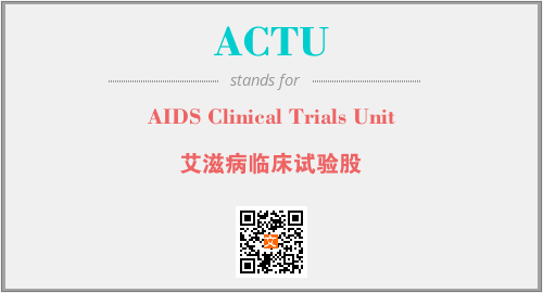 英文缩略词“ACTU”经常作为“AIDS Clinical Trials Unit”的英文缩写来使用,中文表示:“艾滋病临床试验股”。本文将详细介绍英文缩写词ACTU所代表英文单词,其对应的中文拼音、详细解释以及在英语中的流行度。此外,还有关于缩略词ACTU的分类、应用领域及相关应用示例等。
