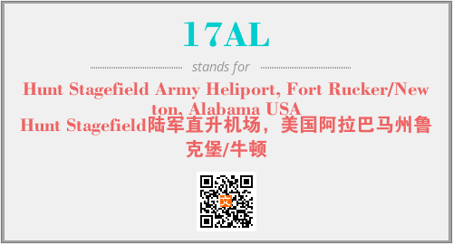 上述内容是“Hunt Stagefield Army Heliport, Fort Rucker/Newton, Alabama USA”作为“17AL”的缩写,解释为“Hunt Stagefield陆军直升机场,美国阿拉巴马州鲁克堡/牛顿”时的信息,以及英文缩略词17AL所代表的英文单词,其对应的中文拼音、详细解释以及在英文中的流行度和相关分类、应用领域及应用示例等。