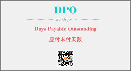 英文缩略词“DPO”经常作为“Days Payable Outstanding”的英文缩写来使用,中文表示:“应付未付天数”。本文将详细介绍英文缩写词DPO所代表英文单词,其对应的中文拼音、详细解释以及在英语中的流行度。此外,还有关于缩略词DPO的分类、应用领域及相关应用示例等。