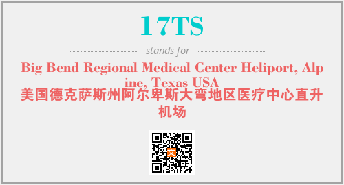 英文缩略词“17TS”经常作为“Big Bend Regional Medical Center Heliport, Alpine, Texas USA”的英文缩写来使用,中文表示:“美国德克萨斯州阿尔卑斯大弯地区医疗中心直升机场”。本文将详细介绍英文缩写词17TS所代表英文单词,其对应的中文拼音、详细解释以及在英语中的流行度。此外,还有关于缩略词17TS的分类、应用领域及相关应用示例等。