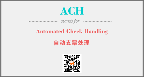 英文缩略词“ACH”经常作为“Automated Check Handling”的英文缩写来使用,中文表示:“自动支票处理”。本文将详细介绍英文缩写词ACH所代表英文单词,其对应的中文拼音、详细解释以及在英语中的流行度。此外,还有关于缩略词ACH的分类、应用领域及相关应用示例等。